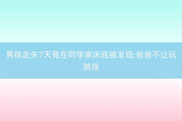 男孩走失7天竟在同学家床底被发现:爸爸不让玩游戏