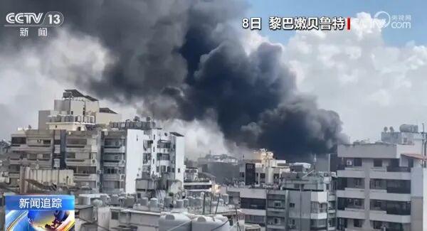以色列4月8日对黎巴嫩首都人口密集区域发动大规模空袭,造成数千人伤亡,图为黎巴嫩首都一栋建筑被以色列空袭。图源央视截图。